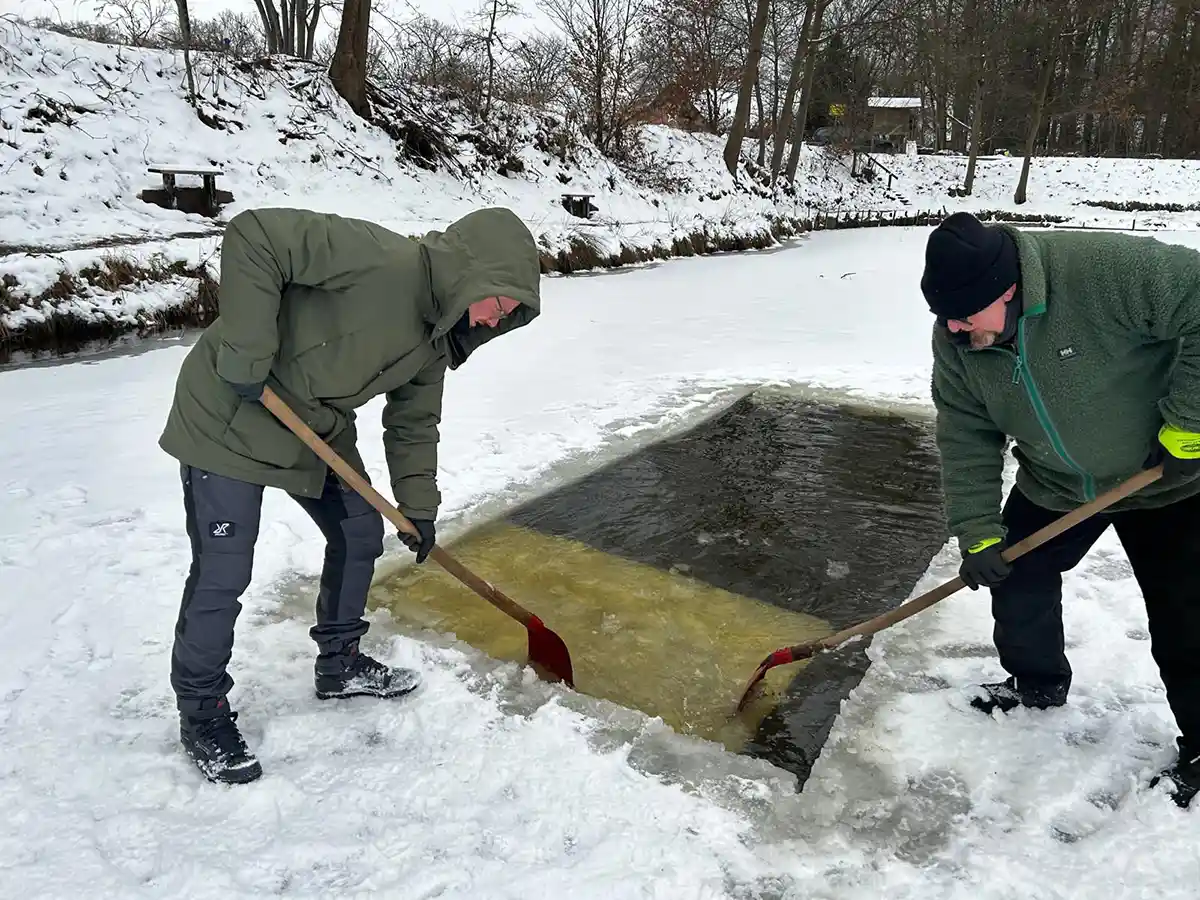 Angler schaffen eine eisfreie Fläche in einem See im Landkreis Celle © Fischereiverein Eversen