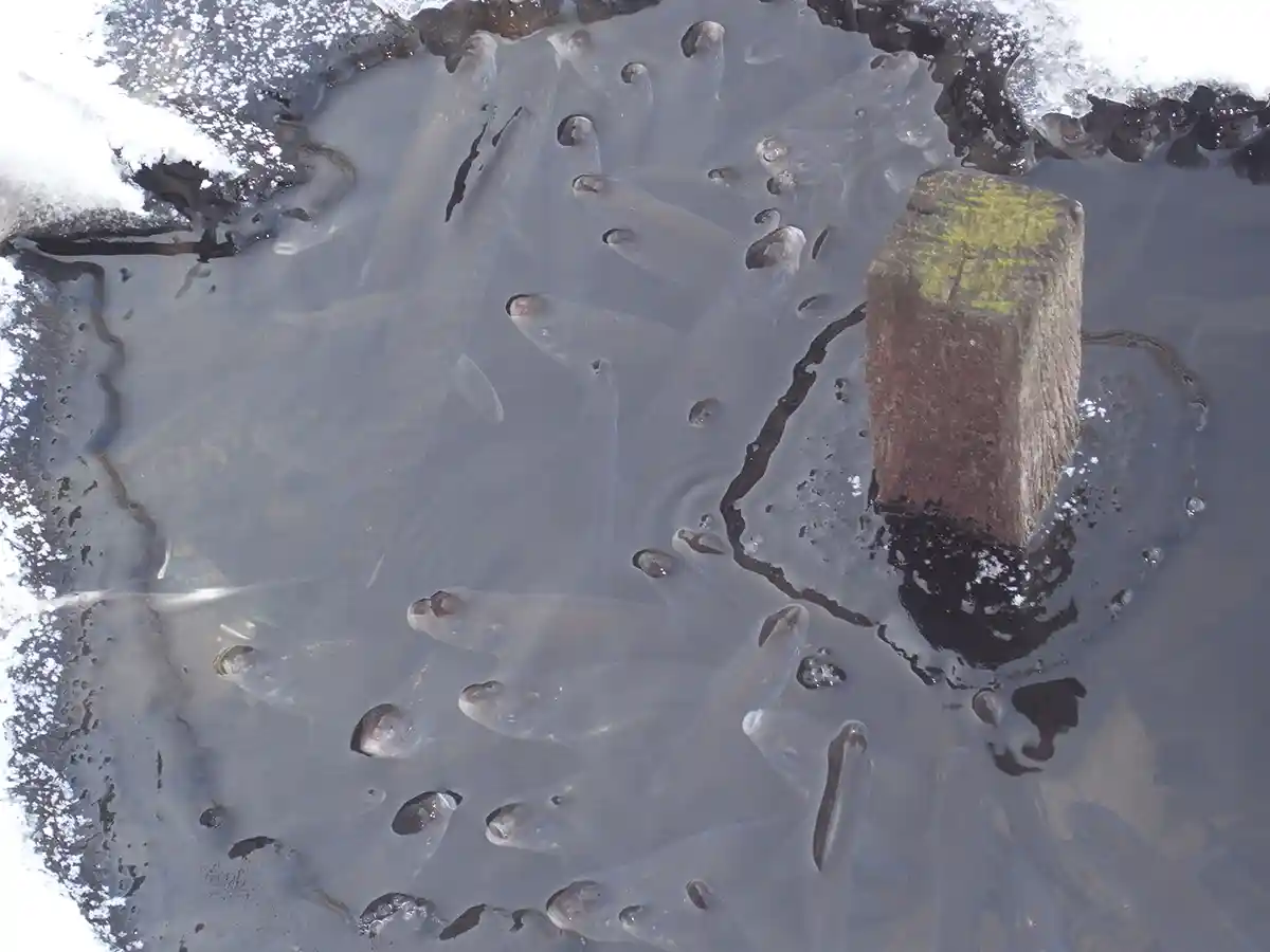 Woran erkennt man, ob die Gewässervereisung für Fische kritisch wird?